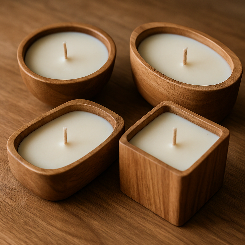 Wooden container soy wax candles are natural, eco-friendly candles poured into stylish wooden vessels. They offer a warm, rustic look and a clean, long-lasting burn with a cozy scent.